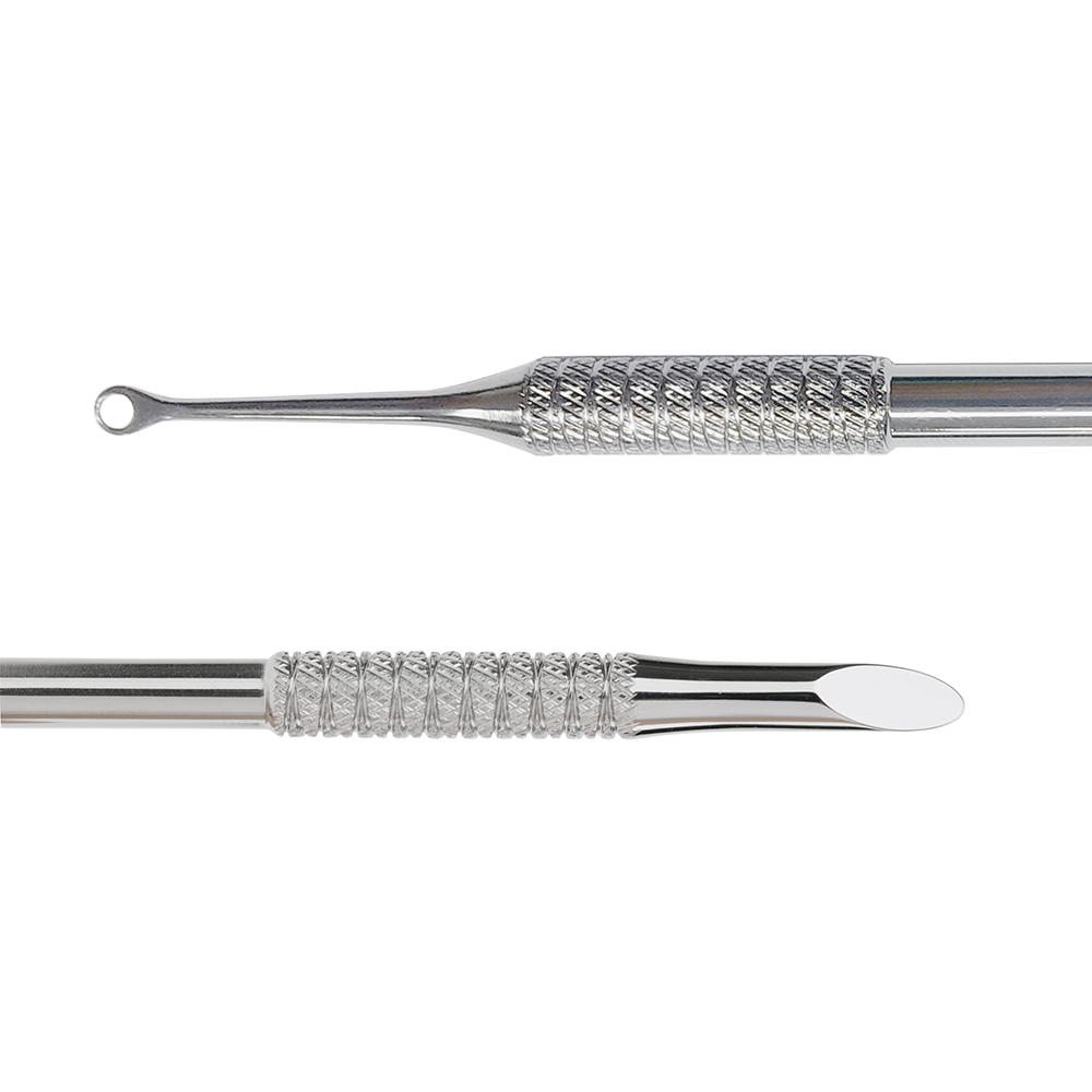 - Użyj wykonturowanej części, aby wyczyścić obszar pod wolnym brzegiem paznokcia/podważyć skórki.